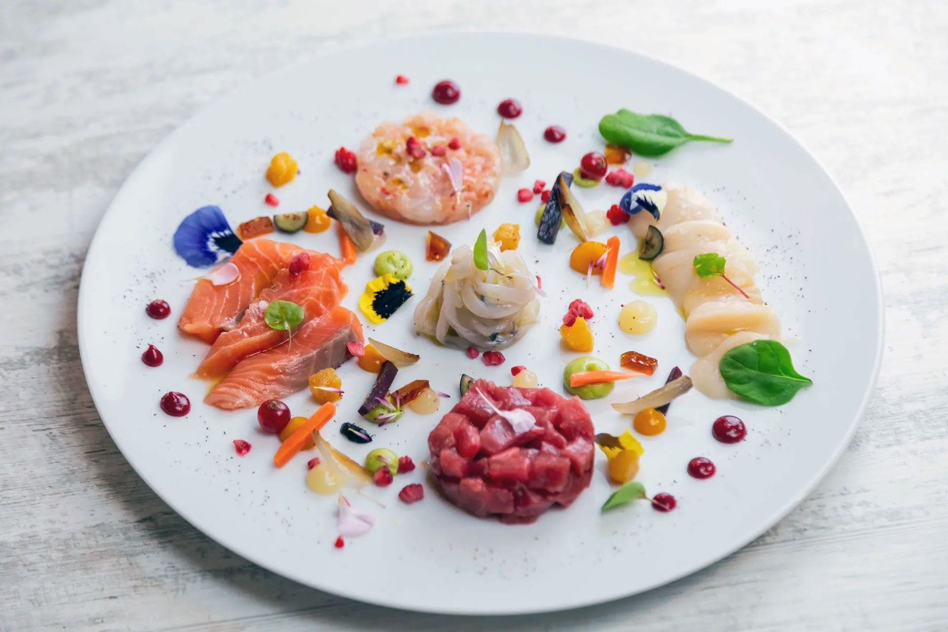 Langoustines, Red Prawns, a large variety of oysters, sea truffles, razor clams, carpaccios, and tartares.