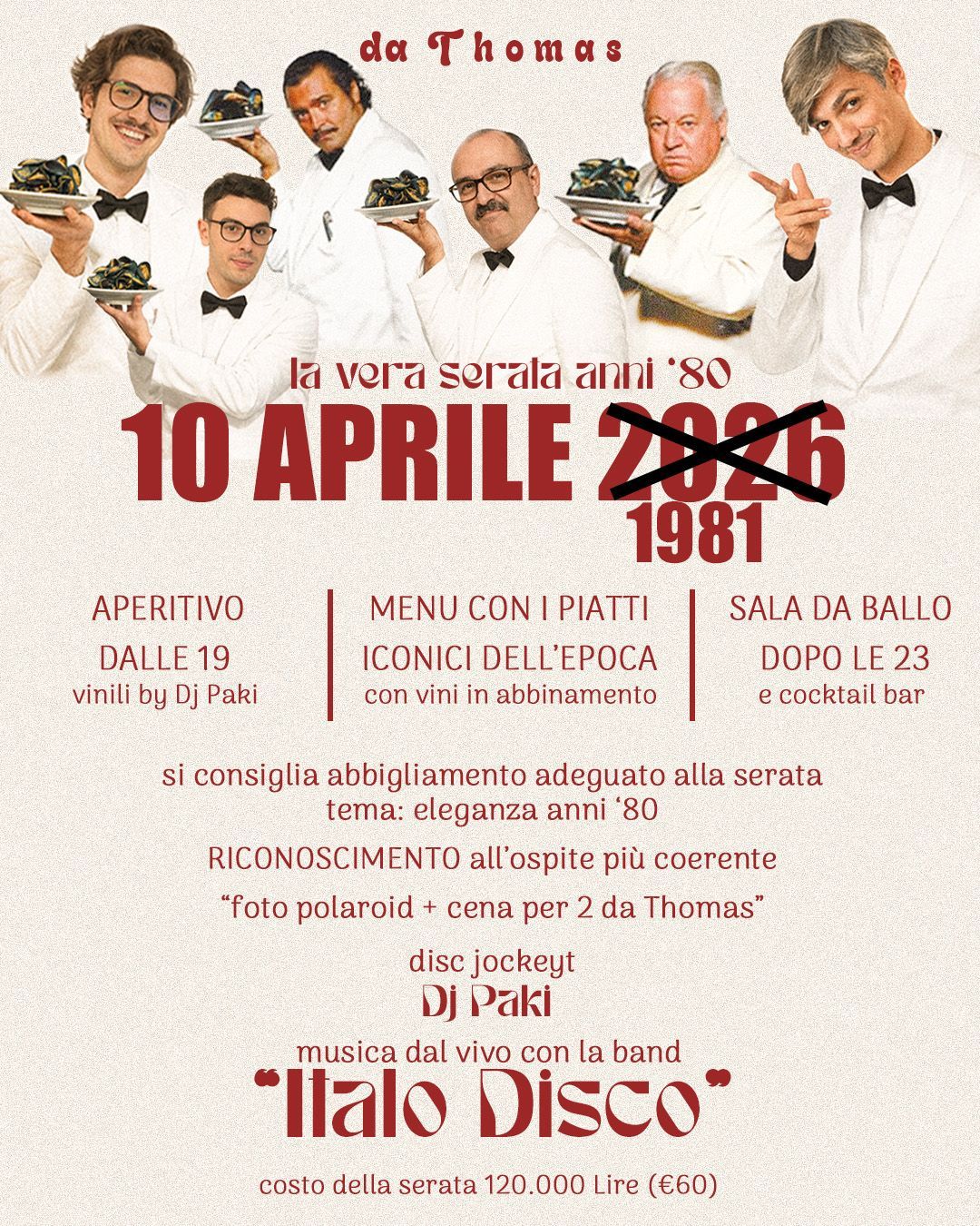 con aperitivo, menu, mood e ambiente coerenti con l'epoca